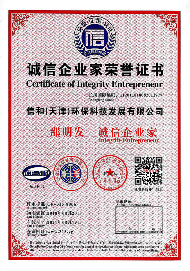 “質量就是生命”。信和重質量、守信用,被中國誠信品牌萬里行推薦“誠信示范單位”、“AAA資信等級”、“AAA級誠信經營示范單位”、“誠信經理人榮譽證書”、“誠信企業(yè)家榮譽證書”、“中國產品質量放心達標企業(yè)”、“誠信品牌聯盟會員單位”、“中國質量誠信AAA級品牌企業(yè)”、“中國百強優(yōu)秀企業(yè)”、“節(jié)能環(huán)保推廣產品”、“全國科技創(chuàng)新企業(yè)”等榮譽稱號。