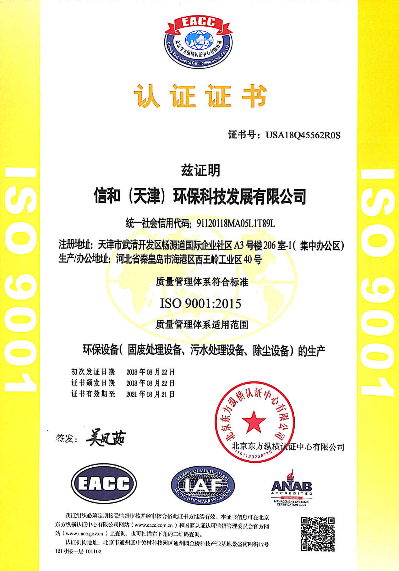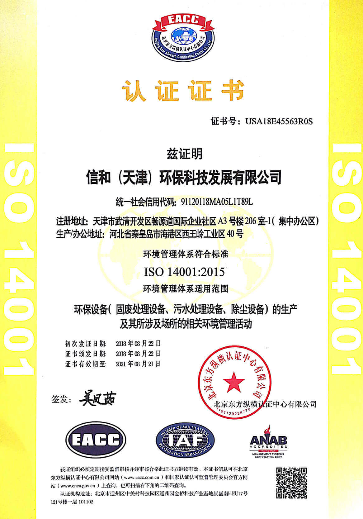 信和(天津)環(huán)保科技發(fā)展有限公司是一家專業(yè)從事環(huán)保設備研發(fā)的生產型企業(yè),坐落于天津市武清開發(fā)區,注冊資金2000萬元,擁有≤中華人民共和國進出口企業(yè)資格證≥和≤安全生產許可證≥。公司為《中國環(huán)保產業(yè)協會會員單位》《中國城市環(huán)境衛(wèi)生協會會員單位》《中國節(jié)能協會會員單位》。企業(yè)現有員工168人,其中高級職稱技術人員65名、1個技術研發(fā)中心和4個生產車間,擁有國際先進的板材加工中心、激光切割機、數控沖剪機、等離子切割機等下料成型設備。